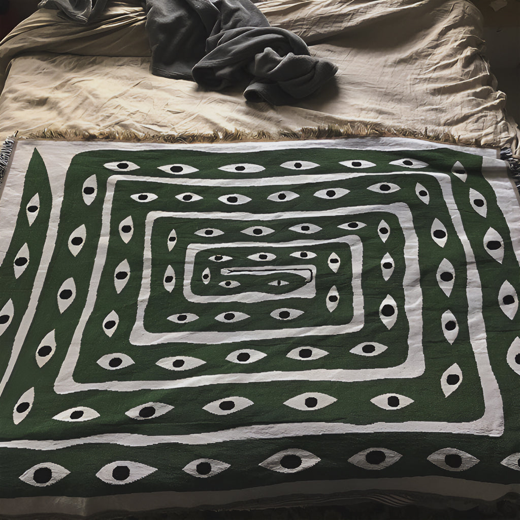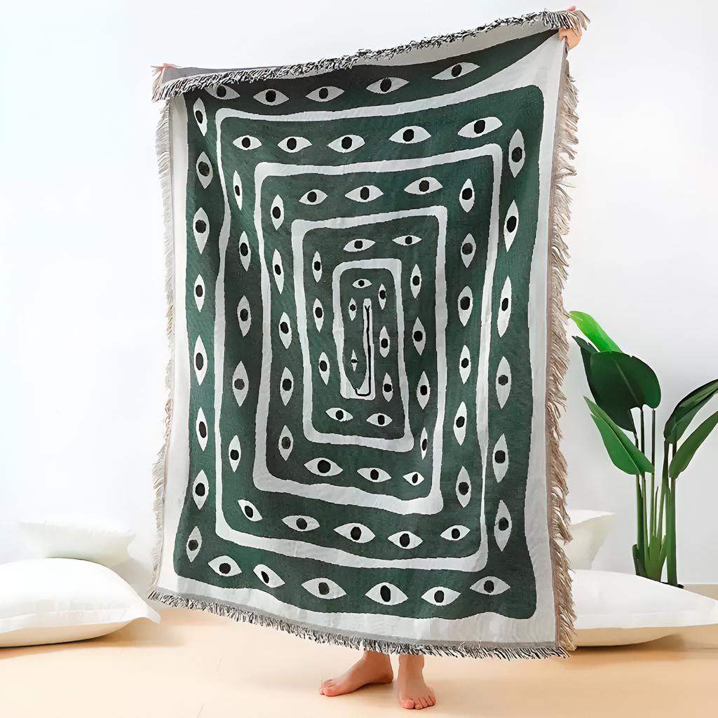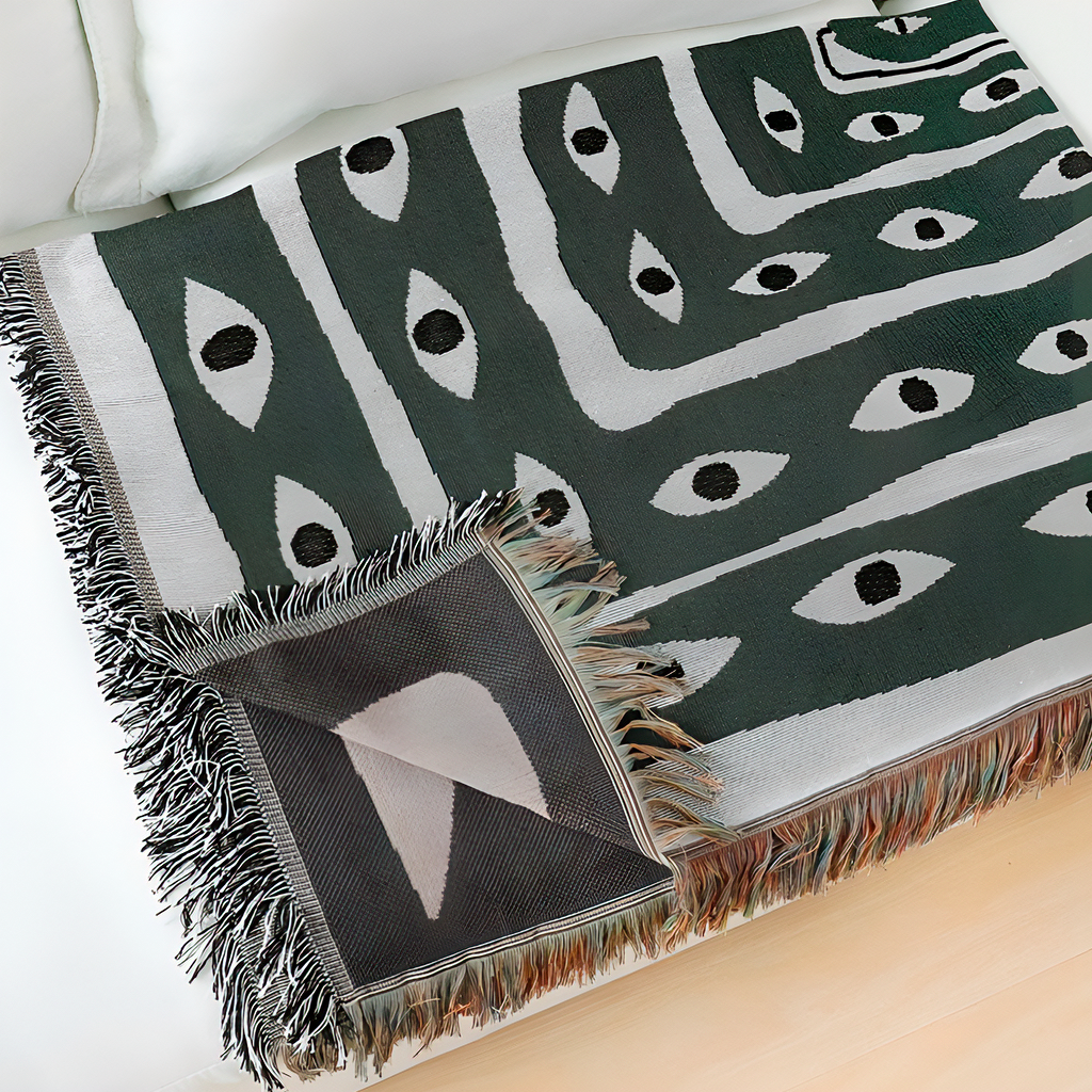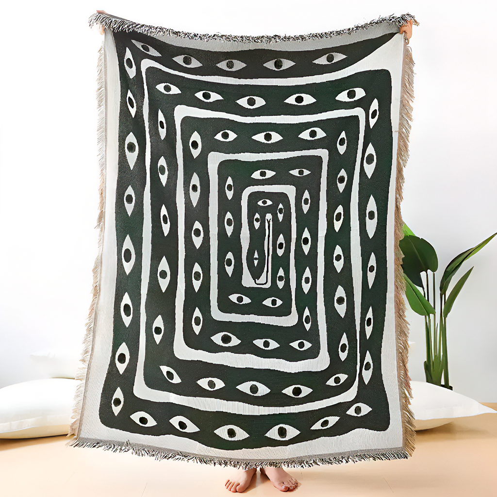 Com padronagem envolvente de olhos e serpentes, a Manta Occhi del Serpente é puro símbolo e presença.