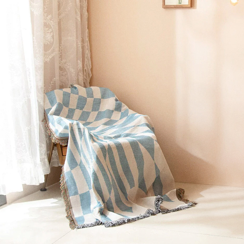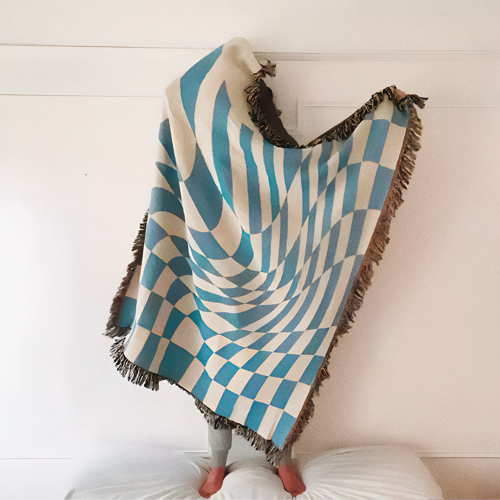 Com padronagem xadrez bem marcada e equilíbrio entre contraste e suavidade, a Manta Quadra traz aquele ar de aconchego com presença.