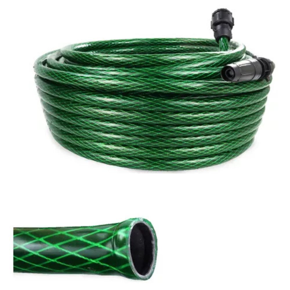 Com 30 metros de extensão e material trançado super resistente, ela elimina dobras e interrupções no fluxo da água.