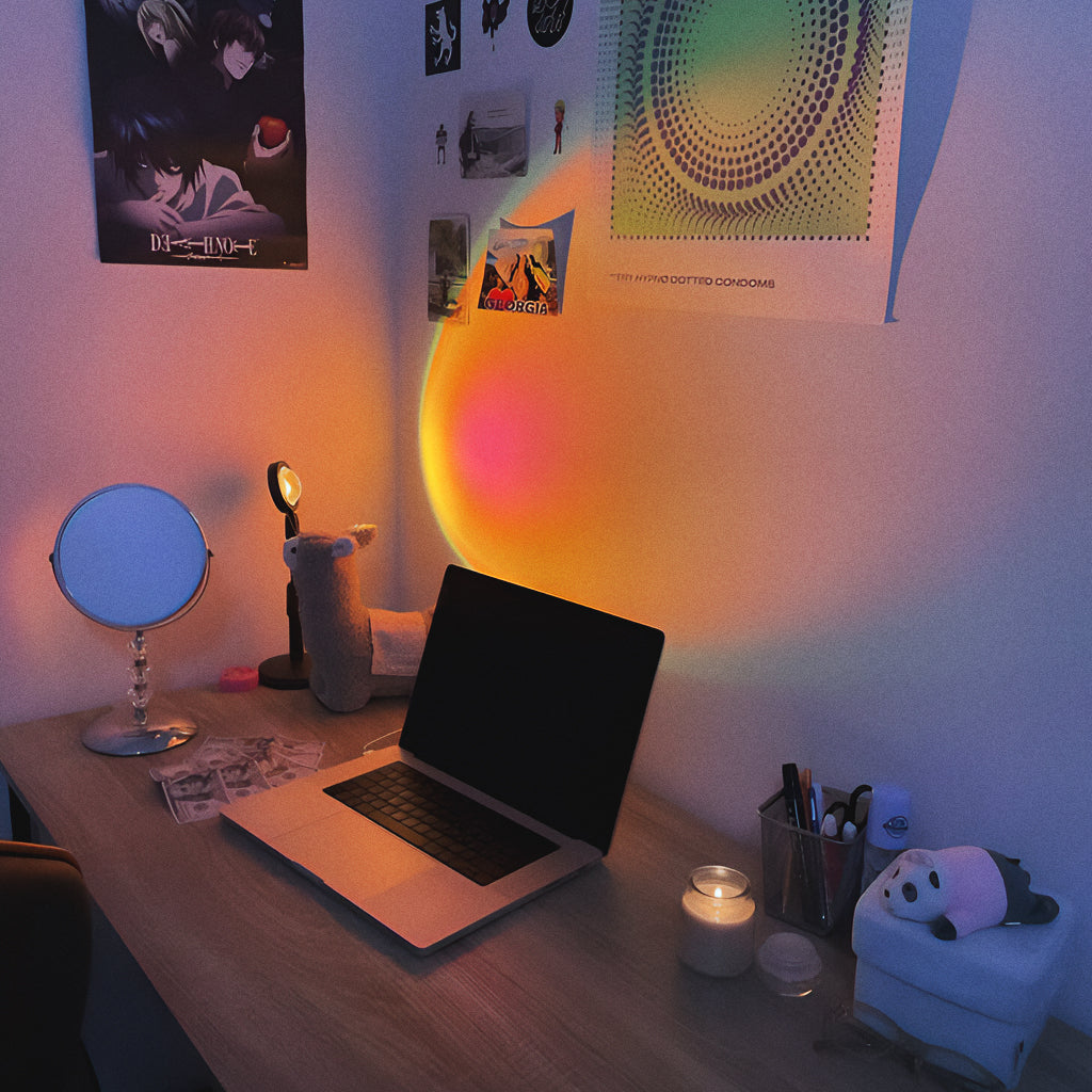 Um toque de magia para o seu espaço: o Projetor Aurora cria a sensação de um pôr do sol natural dentro de casa. Perfeito para deixar o ambiente mais acolhedor e cheio de cor :)